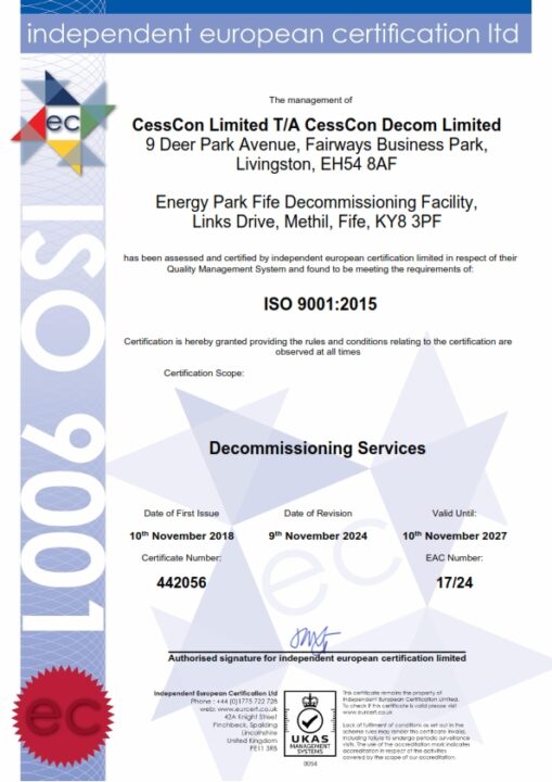 At CessCon Decom, we continually strive for the highest standard in everything we do and in every way we conduct our business. Through our Quality Management System, we continually seek opportunities to identify and implement improvements.